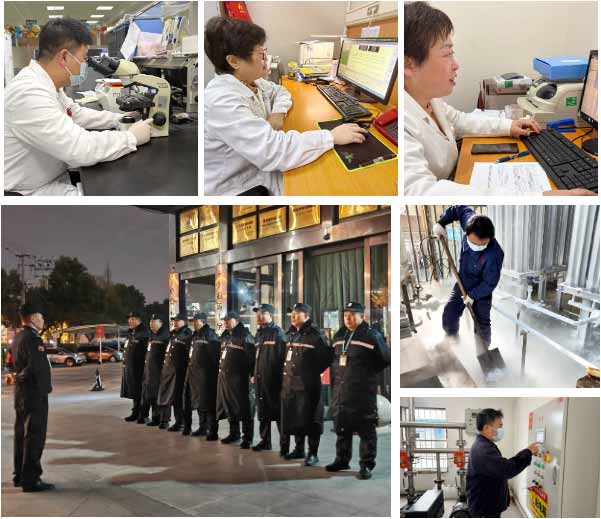 维修组陆洪其、王锡彬、许金海、江永彬等师傅轮班值守,严谨巡查设施设备,确保医院水电暖24小时正常运行。