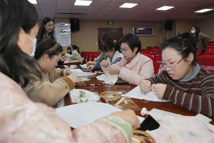 手作体验环节分国风竹节包、扭扭棒郁金香花束两组同步进行。结合教学视频,分别由专业手作老师为大家细致讲解制作步骤,手把手演示制作技巧。平日里辛勤的白衣天使们,此刻化身专注的 “手作匠人”,暂时放下工作的忙碌,全身心投入到手作之中。