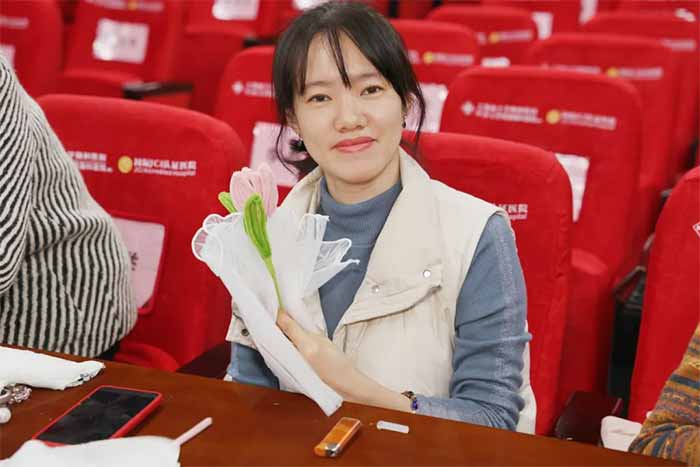 经过近一个小时的精心制作,一只只独具匠心的竹节包、一束束栩栩如生的郁金香陆续完成。大家纷纷举起自己的作品,脸上写满成就感与喜悦。精致的竹节包映衬着灿烂的笑脸,绽放的郁金香传递着节日的祝福,定格下这份独属于女神节的美好与温馨。