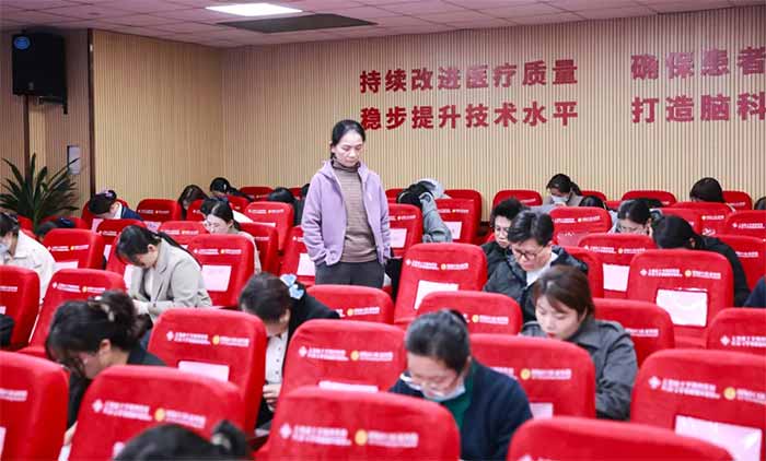 叶文琴教授作考前动员。叶文琴教授强调,此次考核既是对前期理论授课效果的检测,也是对个人学习成果的必要检验。她表示,考核合格者将由蓝生脑科颁发脑科危重症护理专科护士理论课结业证书,成绩优秀者还将获得表彰奖励。同时,下半年蓝生脑科将启动重症监护学习班实践课程,希望大家以此次考核为契机,夯实重症理论基础,真正实现“以考促学、以考促教、以考促用”,持续提升专业能力与综合素养。