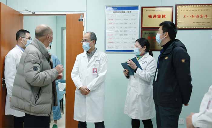 检查组深入临床一线和后勤重点区域,先后对10F综合内科、手术室、9F重症医学科、8A神经内六科、8B神经内七科、7B神经内五科、康复医学科、高压氧科、医学影像科、放疗科以及安保消防控制室等重点科室和场所进行了实地检查,并对设备机房、配电房、电梯间、消防通道、医生休息室、危化品暂存点等安全关键部位开展了全面、细致的排查。